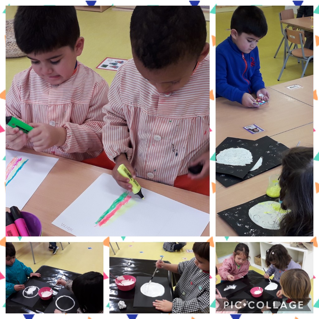 A partir d’aquí els nens i nenes de tot infantil hem fet tallers de plàstica relacionats amb l’espai i presentarem dues propostes al concurs: les llunes i els planetes.