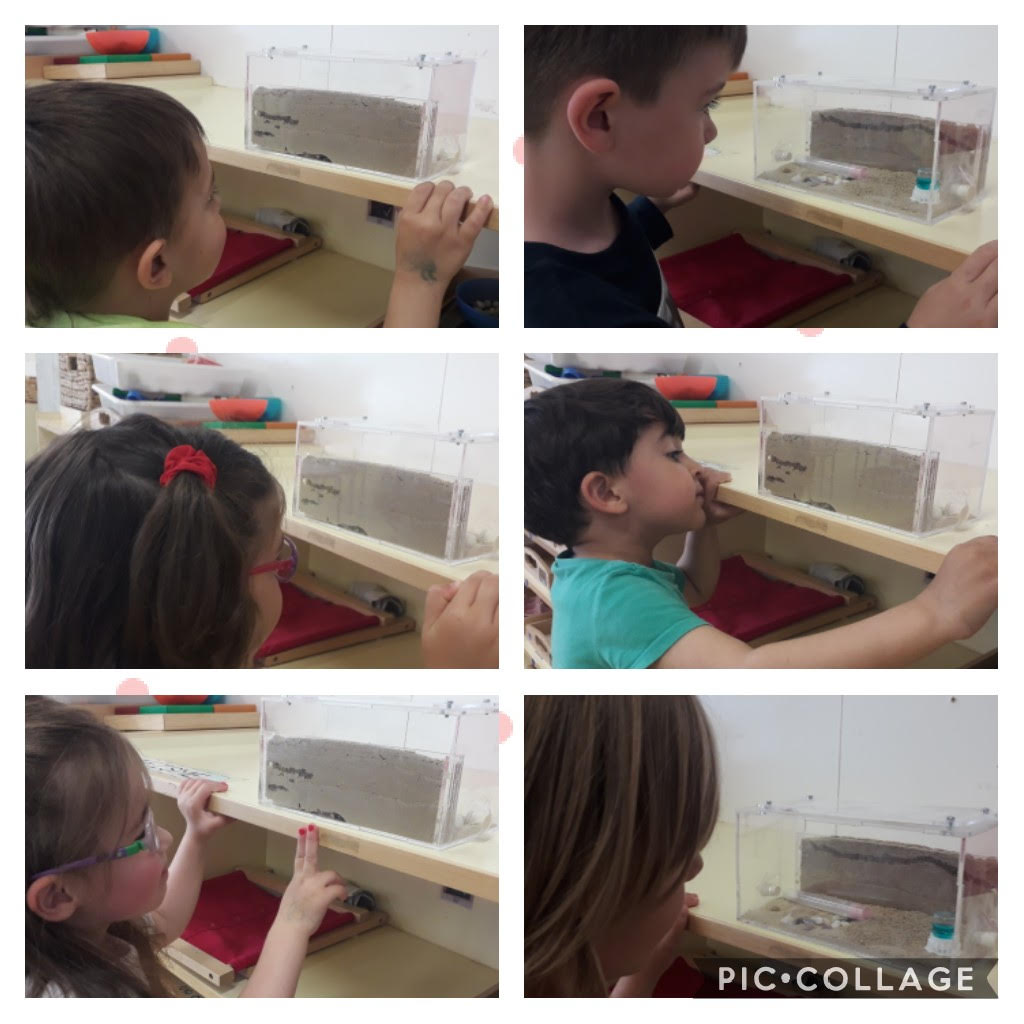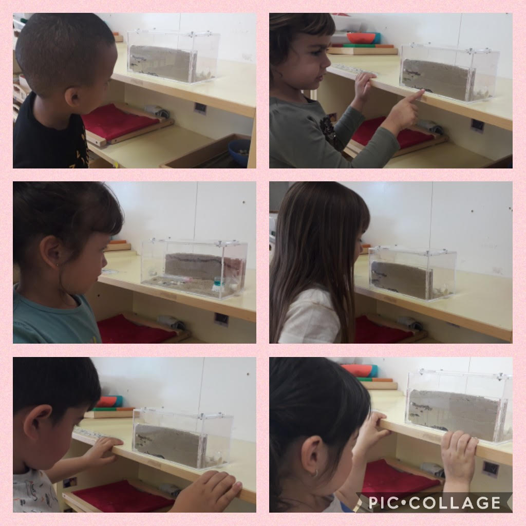 Es pot veure la formiga reina i unes quantes formigues que fan túnels i foradets on hi guarden el menjar! també tenen aigua!