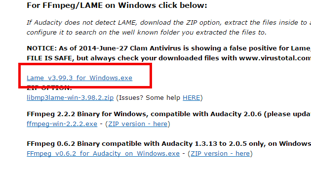 I triem baixar-nos el fitxer autoexecutable lame 3.99.3 . exe