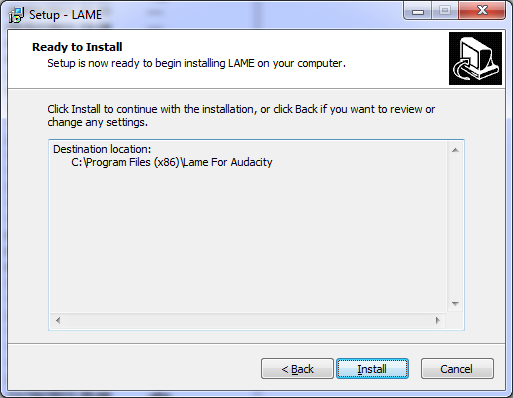 Ens suggereix una ruta per a la seva instal·lació. Si parem atenció, veurem que la ruta suggerida no té res a veure amb la ruta a la qual està instal·lat Audacitiy. La raó és que estem instal·lant un còdec que no nomès serveix per a Audacitiy i, per tant, s’ha d’instal·lar com una aplicació general del sistema, sense lligar-la única i exclusivament amb Audacity. Acceptem i cliquem a Next.