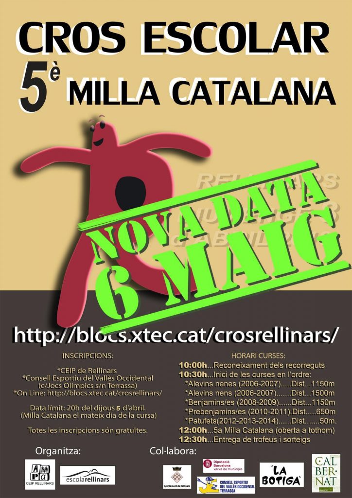 Davant de les previsions meteorològiques, que indiquen pluges per diumenge, hem aplaçat el CROS DE RELLINARS previst per aquest diumenge, al DIUMENGE DIA 6 DE MAIG.