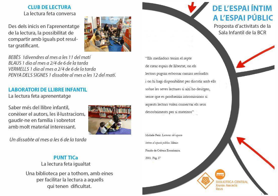 ACTIVITATS DE BIBLIOTECA Publicat el 6 setembre 2012 per ppetrus Us fem arribar amb molta il·lusió els programes que han elaborat a la Biblioteca Central Xavier Amorós per aquest curs en la confiança que resulti del vostre interès i us faci venir ganes de col·laborar-hi.