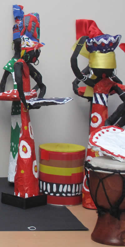 This is a crosscurricular work . In our English lessons pupils read an African story and knew about musical instruments. Then, they spent some Art lessons making these crafts.