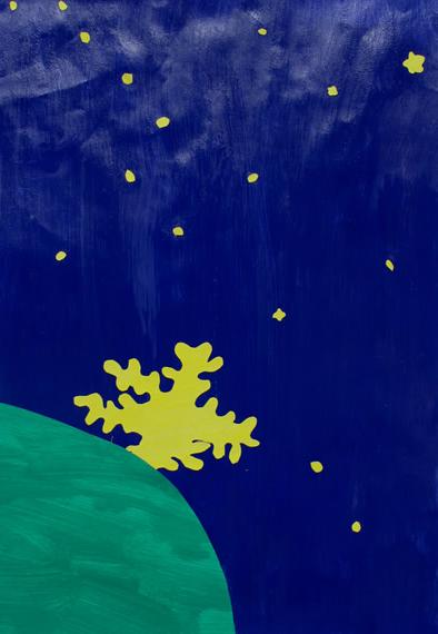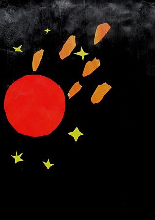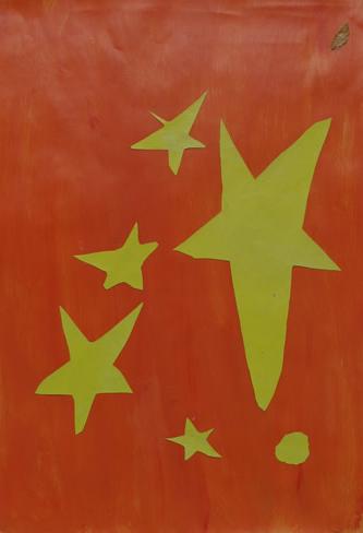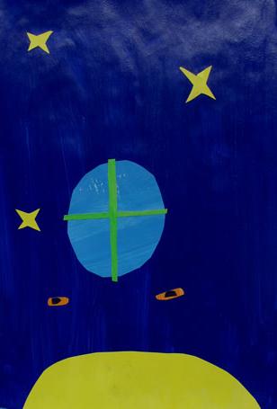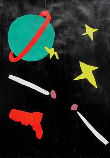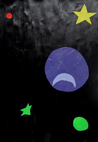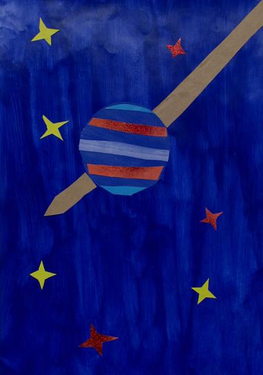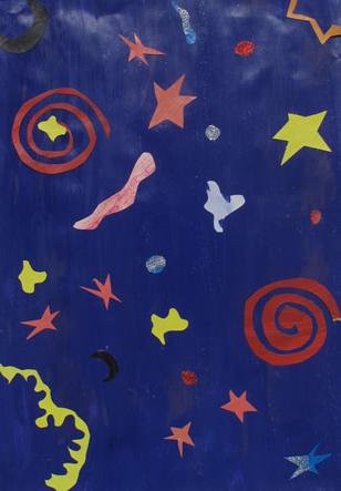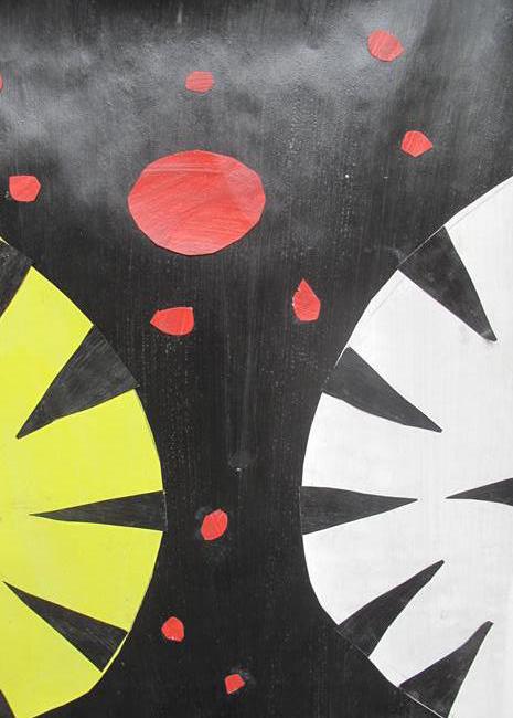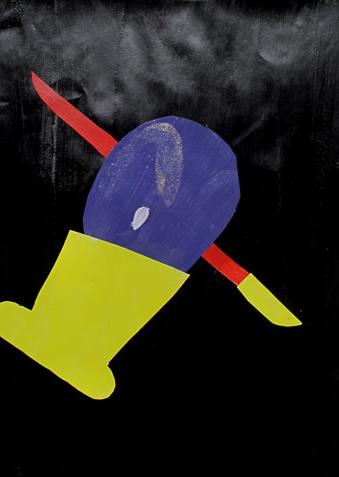Our masks are made of cardboard and decorated with raffia and tempera. The point is they have a symmetrical shape.