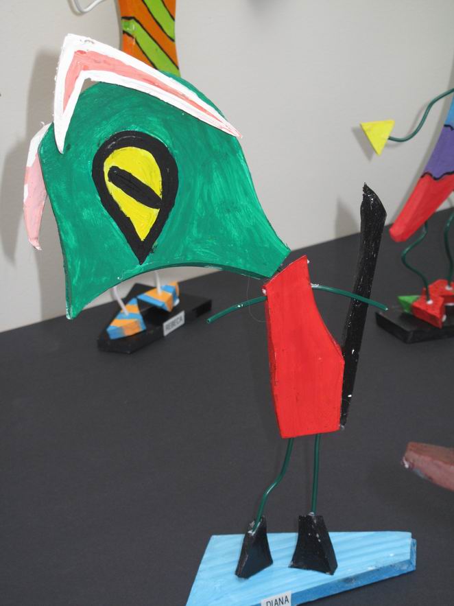 They are made of paper and glue and decorated with tempera and a fabric headdress. Do you like our clothing designs? They are unique.