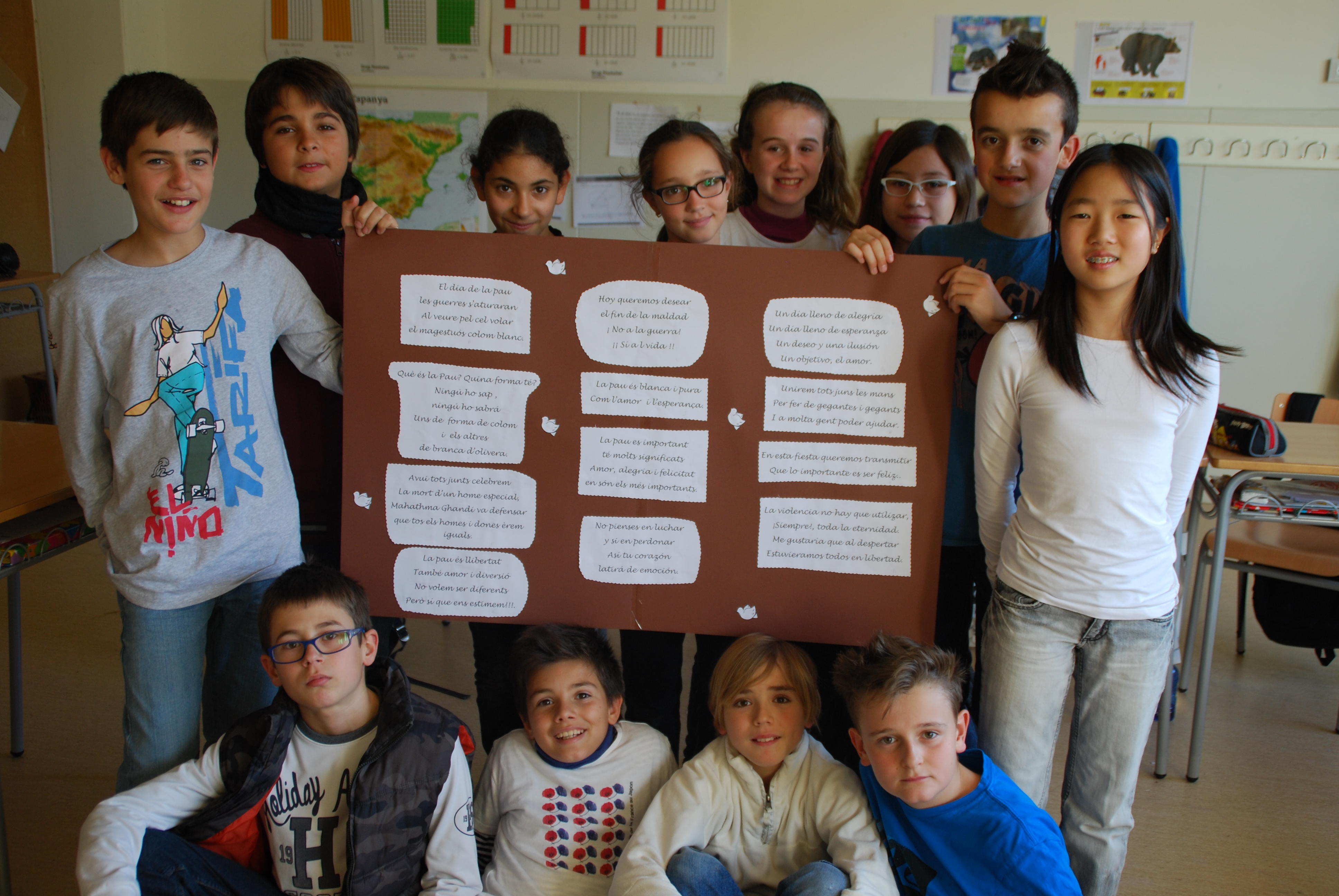 Aquest any totes les classes han elaborat un poema , han ballat la dansa de Brusel.les i han elaborat un colom amb diferents tècniques.