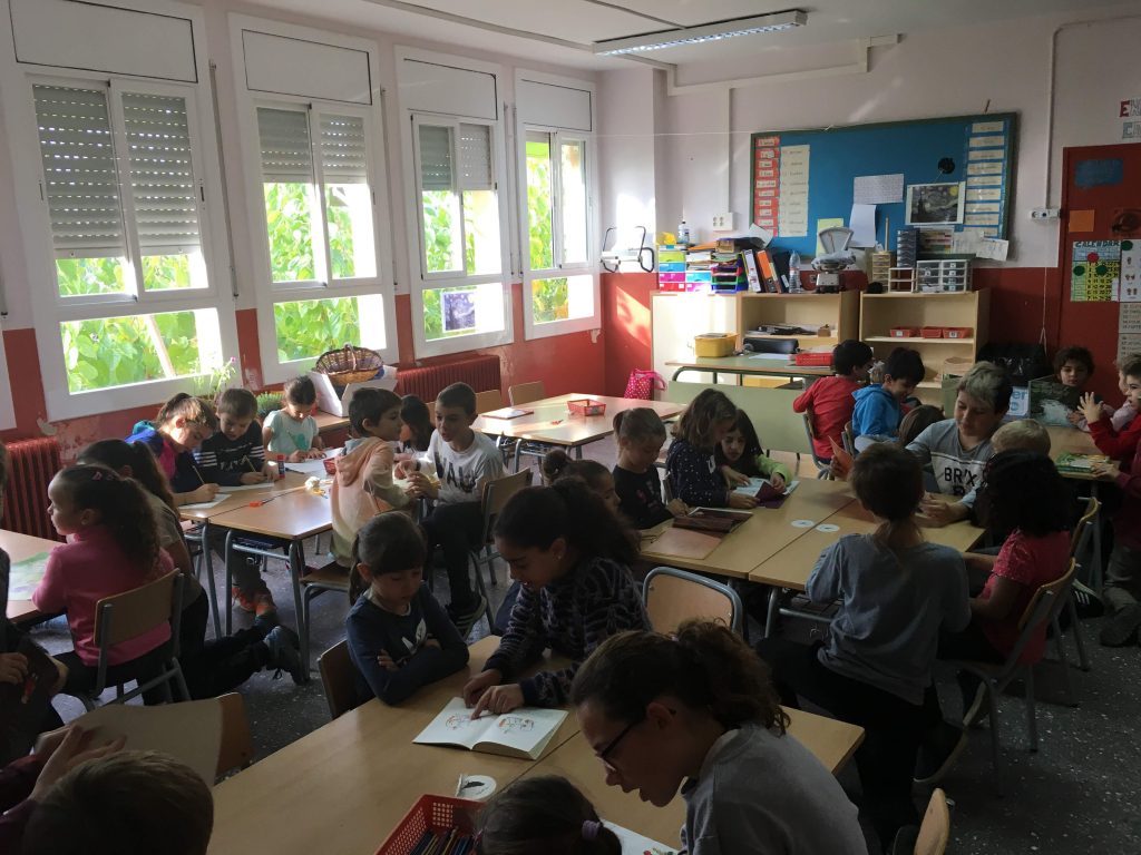 Aquest any hem iniciat l’activitat d’apadrinament lector. Els grans gaudeixen moltíssim i desenvolupen habilitats per captar l’atenció dels més petits, fer-se entendre, entonar… i els petits estan encantats de tenir un ajudant més gran que ell, però que segueix sent infant. Una experiència molt maca i enriquidora per a tots.