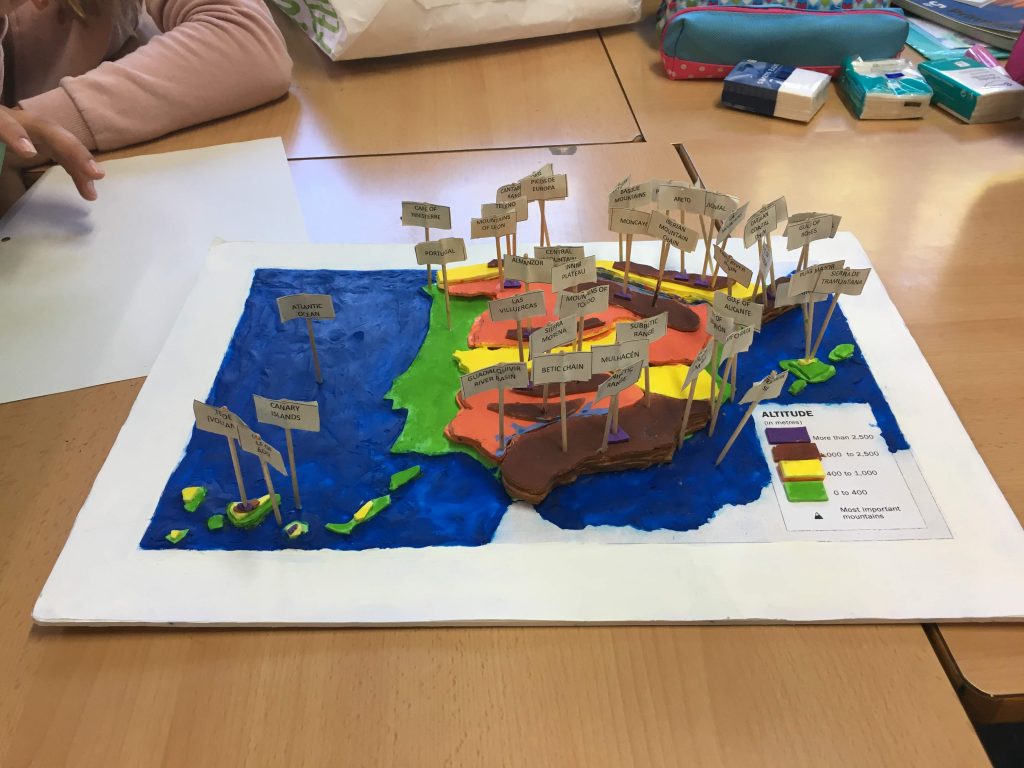To finalize the didactic unit of the relief of the Iberian Peninsula, the pupils have made a model in group.