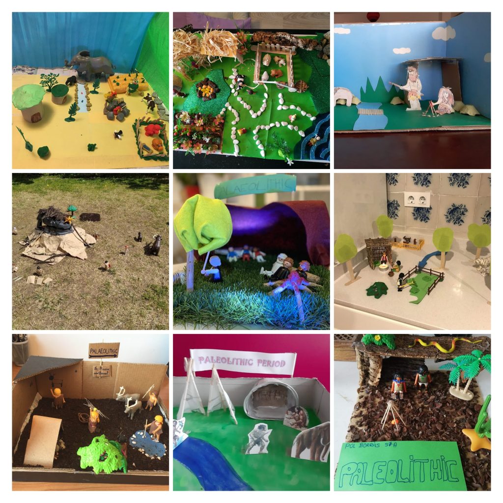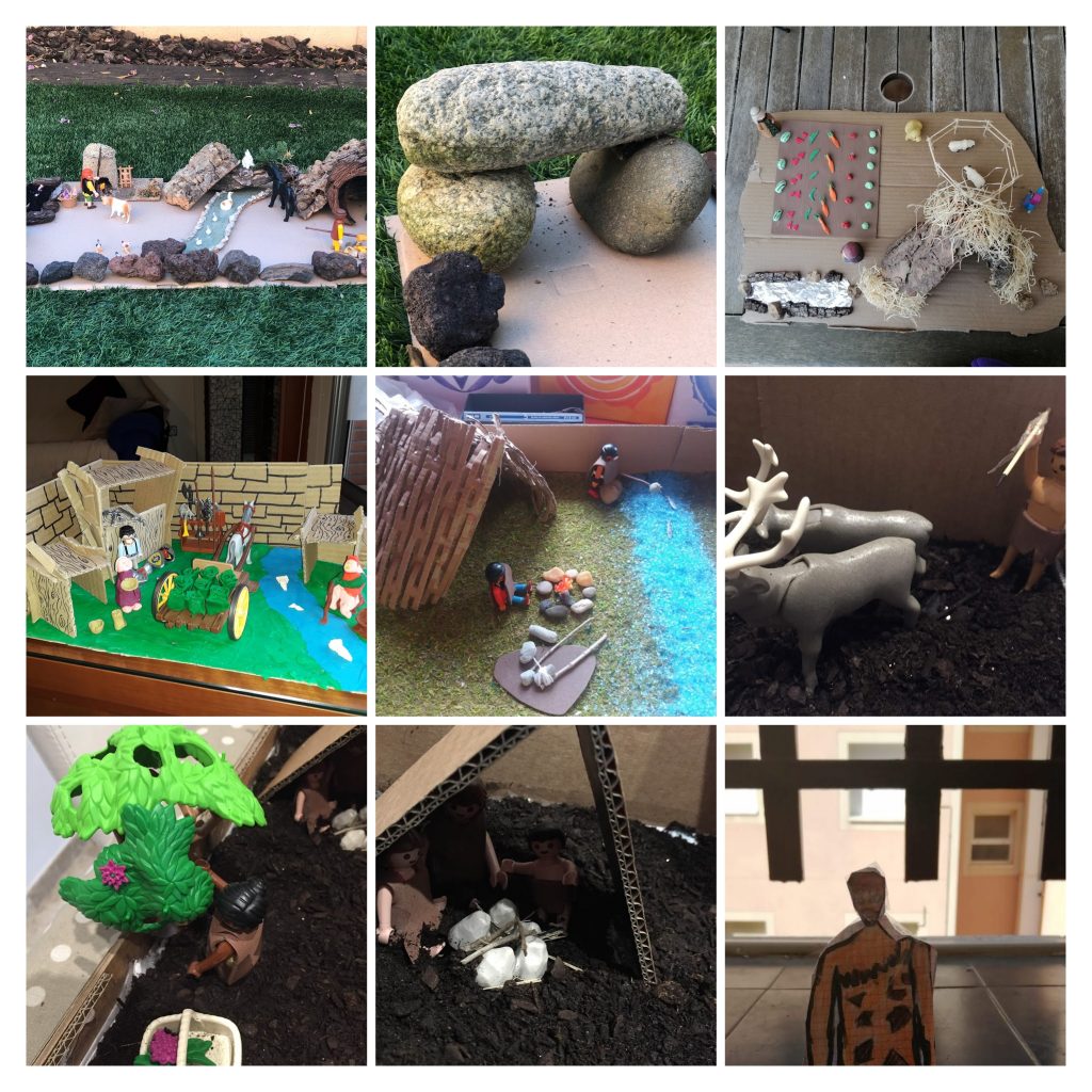 Choose one of the three periods: Palaeolithic, Neolithic or Metal Ages and represent the scene doing arts and crafts. Use your imagination. You can use any resource you find at home like card, paper, cloth, a box, plasticine, wood sticks, branches…whatever you want. When we turn back to school we’ll do an exhibition!!!