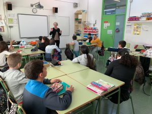 Per Easter va venir a Olesa a veure la seva néta i va visitar-nos a l’escola per explicar-nos com celebren Easter al seu país. Entre d’altres coses, pinten ous de Pàsqua i decoren barrets (Easter bonet).
