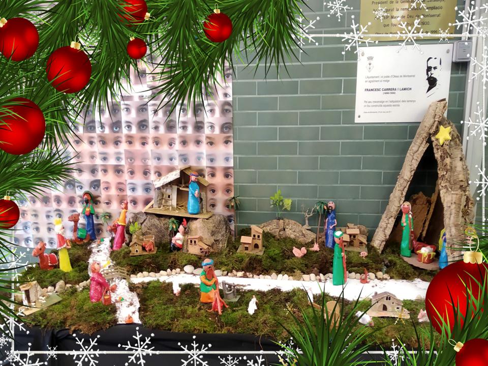 Alguns nens i nenes de 5è  han estat treballant molt per acabar el seu pessebre i decorar l’escola, també han pintat els vidres de l’entrada amb motius de Nadal.