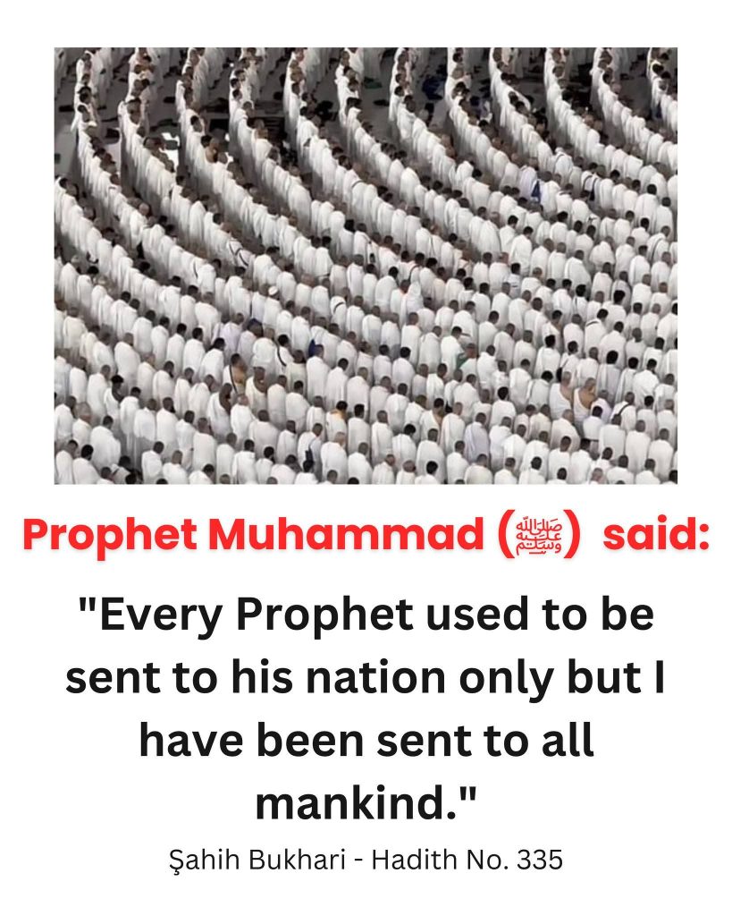 Els musulmans creuen que Muhàmmad és l’últim profeta, el que tanca el cicle o cadena profètica. I creuen que és enviat a tota la humanitat, a diferència dels profetes anteriors que foren enviats només a les seves respectives comunitats.