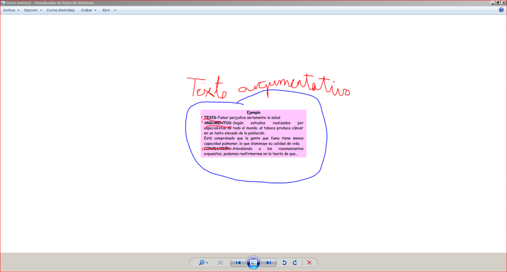 Parte de los diferentes textos que trabajaremos en este apartado estarían los textos argumentativos, con sus tres partes fundamentales, según sale en la fotografía.