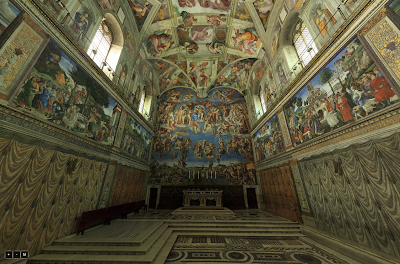 Vatican-Capelle és una impressionant panoràmica de la Capella Sixtina, un dels més gran tresors de la Ciutat del Vaticà, vista en 360º i amb una molt bona resolució i acompanyat d’un fons musical molt adient.