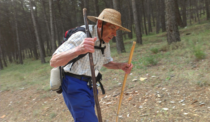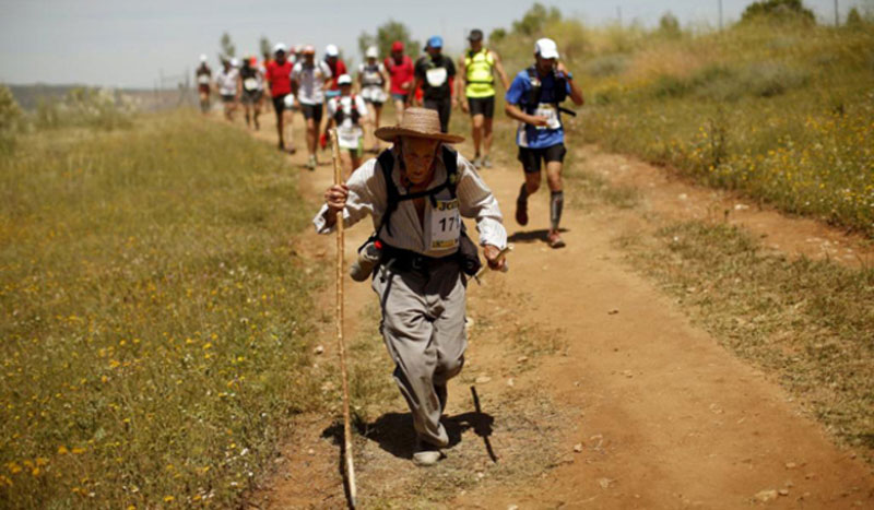“Hay que aprender a andar con él. Te ayuda mucho en las bajadas, te da seguridad, te quita peso de las rodillas. Y si llevas guantes, mejor. La ropa que llevo me va bien, la camisa tiene cuatro bolsillos y me abro los botones cuando necesito ir más fresco. El pantalón largo evita que me roce con brozas de las que pinchan y el sombrero de paja para días como el de este año en Ronda, con 30º, es lo mejor. No soy mucho de esas modas de la gente que corre, la preparación va más allá del equipamiento.”