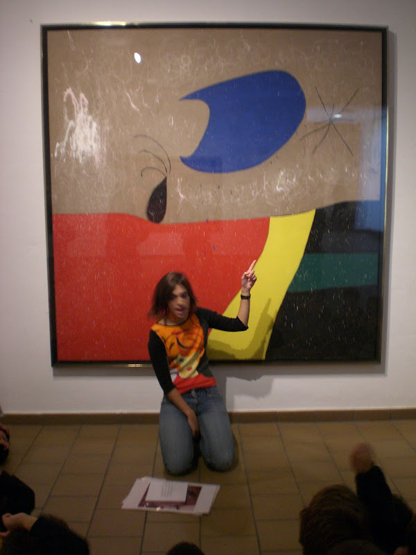 LA PRIMERA SORTIDA LA VÀREM FER DIVENDRES 24 D’OCTUBRE,VÀREM ANAR A BARCELONA A LA FUNDACIÓ MIRÓ I VAM DESCOBRIR MOLTES COSES SOBRE MIRÓ I LA SEVA MANERA DE PINTAR.SABÍEU QUE EL SOL EL PINTA SEMPRE VERMELL?I QUE TRES PÈLS SIGNIFIQUEN UN PERSONATGE?I MOLTES MÉS COSES QUE SEGUR US HAN EXPLICAT ELS NENS/ES.