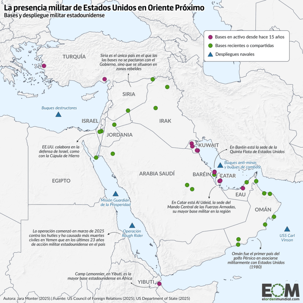 Els exèrcits dels Estats Units i Israel, menyspreant el dret internacional i les negociacions per reduir les capacitats balístiques de l’Iran i tancar el seu programa nuclear, han atacat l’Iran en una operació militar conjunta amb l’objectiu de propiciar un canvi de règim al país. En resposta, la teocràcia iraniana ha ordenat el llançament de míssils i drons contra Israel i ha atacat bases dels Estats Units a la regió.