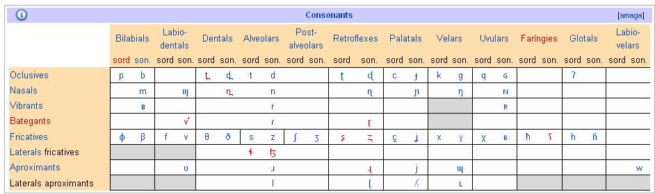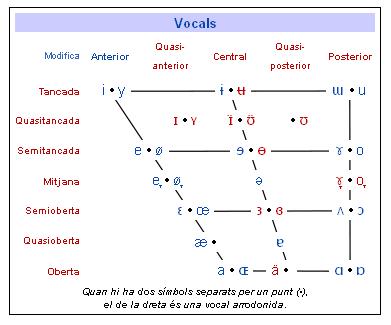 Estem veient la diferència entre so i grafia i la classificació que en fem dels sons. Aqui us deixo – a mode d’ampliació i com a curiositat- l’alfabet fonètic internacional al complet. Com veureu hi ha molts més sons que els que utilitzem en català.