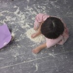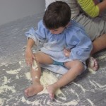 També jugàvem amb la farina, fèiem muntanyes, dibuixàvem, fèiem i desfèiem i descobríem un material molt especial que, com veieu, la farina no només serveix per a cuinar.