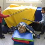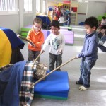 Ens vam preparar ben preparats amb bastons i vam picar-li tot cantant: “Caga tió…”
