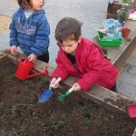Hem tret les males herbes i les plantes que estaven seques, hem mogut la terra , hem plantat i hem regat.