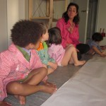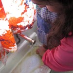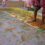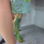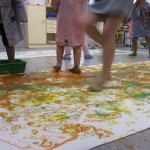 Hem fet pintura amb peus i, molt fàcilment, dels peus hem passat a les cames, als genolls, a les mans i a les cares. Sort que portàvem bates!