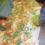 I mentrestant alguns relliscaven i feien coses amb el paper de diari, altres nens i nenes també relliscaven però amb pintura!!!