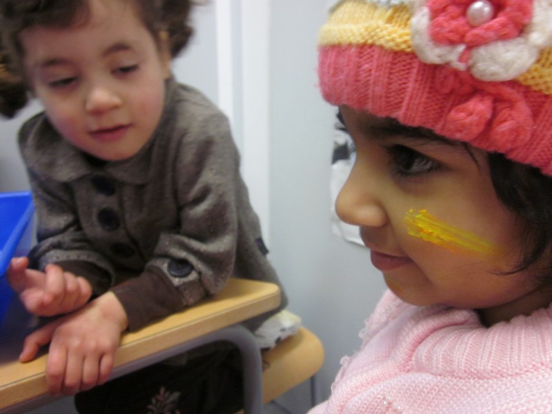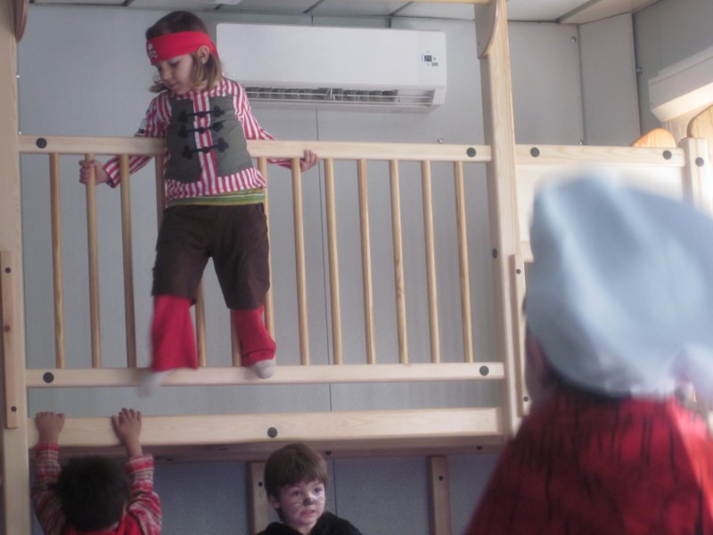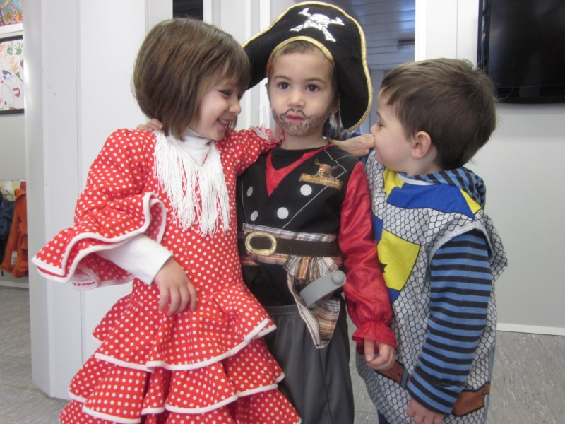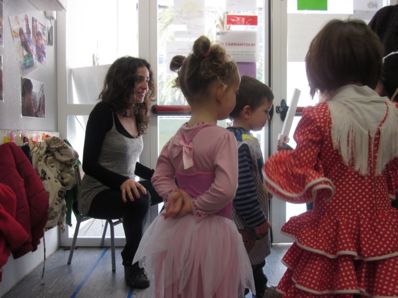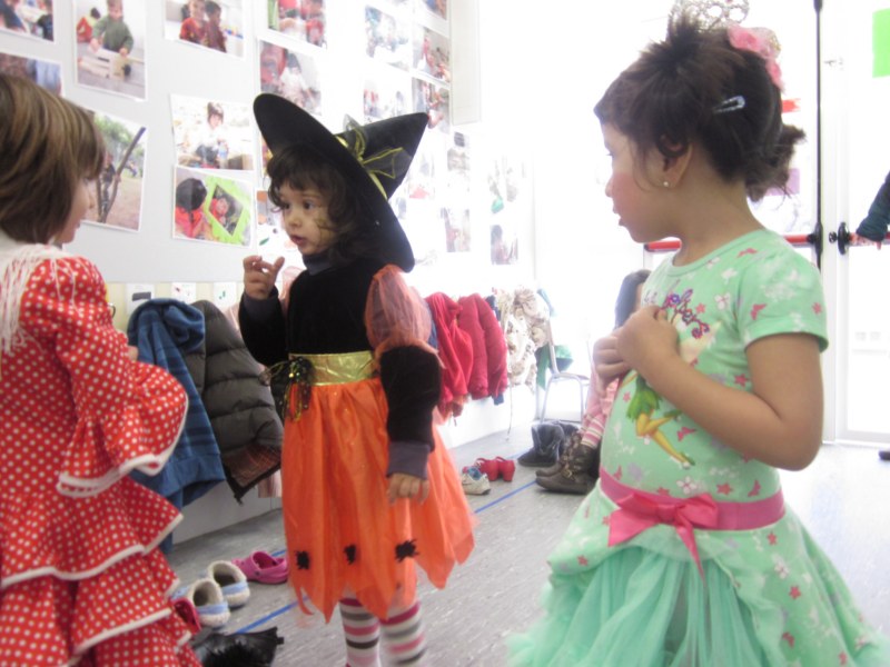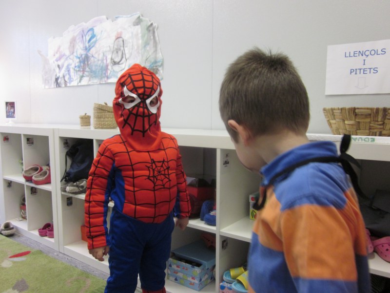 El Carnestoltes l’hem treballat de forma molt natural. Un dia vam fer un racó de maquillatges, un altre vam mirar un conte que havia portat l’Amanda i, finalment, el divendres qui va voler va venir disfressat. Vam tenir de tot: bruixes, pirates, princeses, fades, super herois, flamenques…bé una gran diversitat que ens va alegrar el dia.