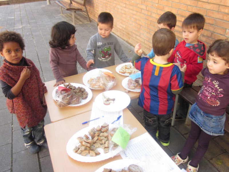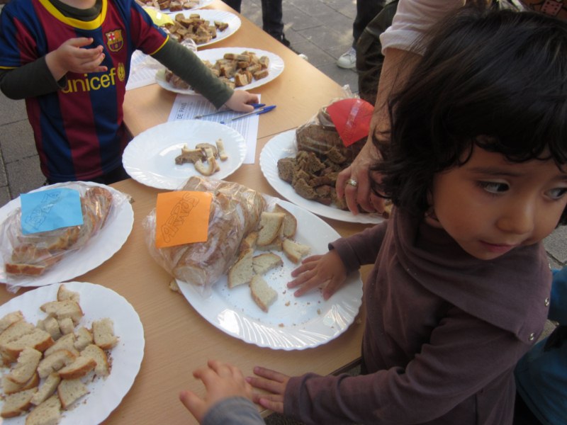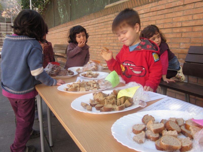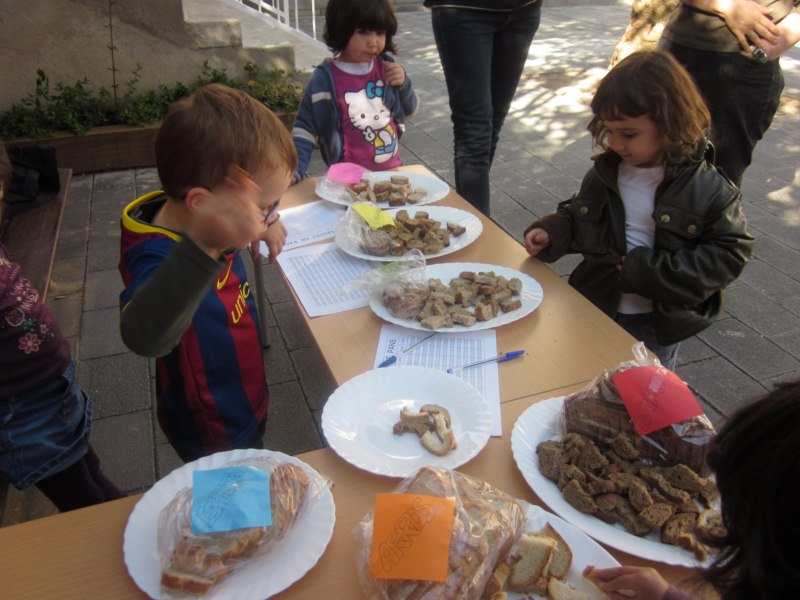 Per una banda, amb ajuda de la comissió de menjador, es va organitzar un tast de pa ecològic per tal de decidir quina variant agradava més i fer-la servir per a l’hora de dinar. Encara desconeixem els resultats d’aquest tast, però el que sí que sabem és que no va quedar ni un tros i que, en general, va agradar molt.