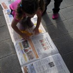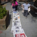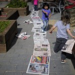 Us volem presentar un dels reptes o desafiaments que, últimament, ens han impressionat més: fer el camí més llarg amb papers de diaris. L’altre dia un grup de nenes van tenir aquesta iniciativa i de forma molt sistematitzada anaven posant els papers. La qüestió consistia en recórrer tot el camí de papers de diaris fins arribar al final. Un cop arribaves al final, col·locaves un paper , el trepitjaves , sorties del camí i el recorries a l’inversa (però aquesta vegada fora del paper),tornaves a agafar un altre paper i tornaves a recórrer tot el camí novament, fins arribar al final i reproduir la seqüència que hem descrit.