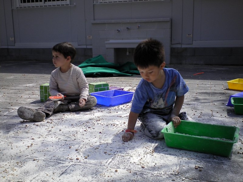 Així doncs, hem decidit transformar el pati en un ambient de treball i, des de les 9 fins les 10:30, els infants poden dedicar-se a estar treballant a diferents propostes. Anem a esmorzar a poc a poc i la idea és que després estiguem al jardinet o a algun ambient tranquil.