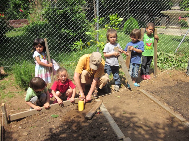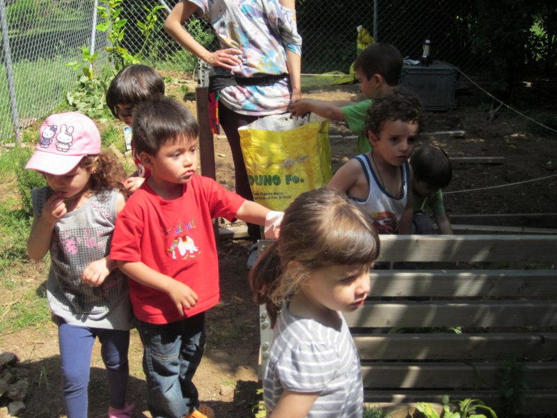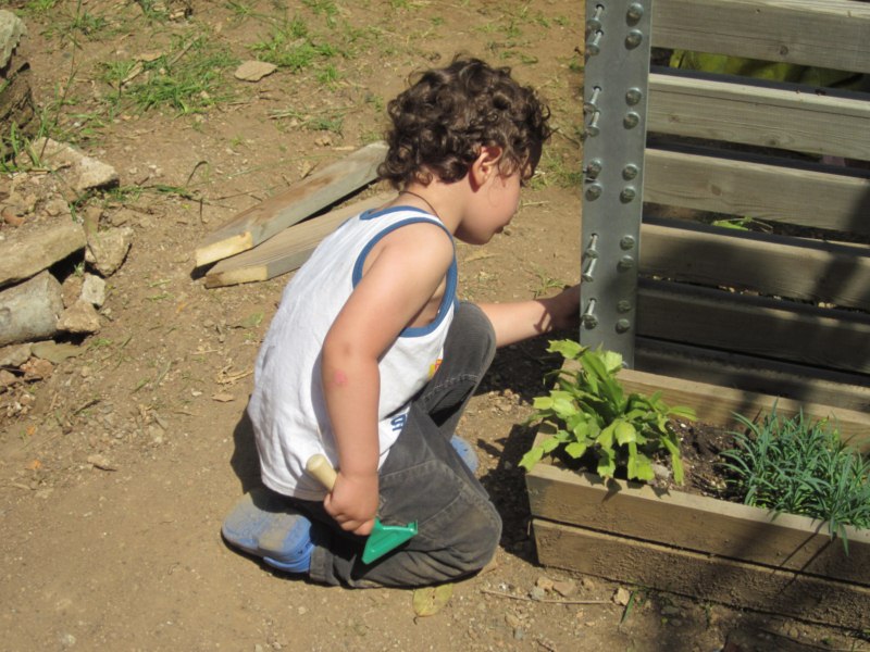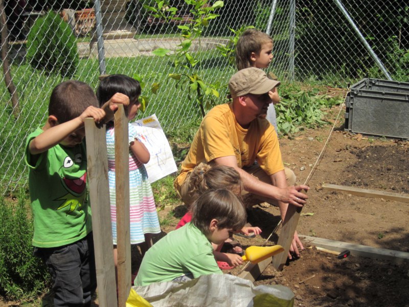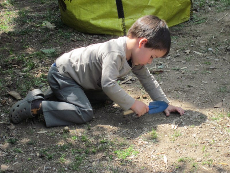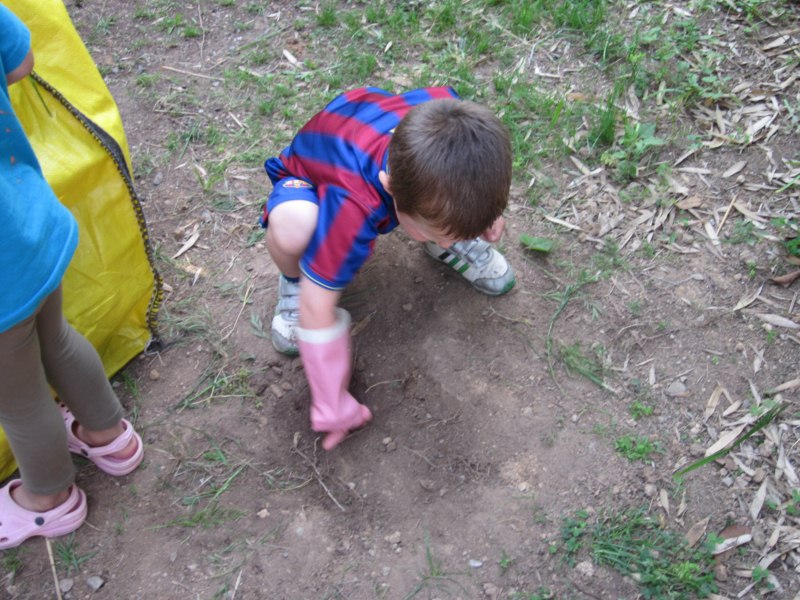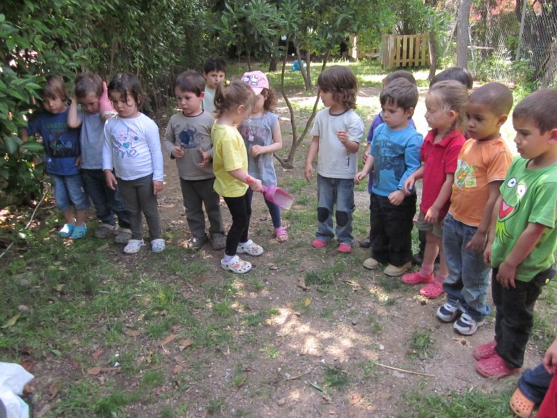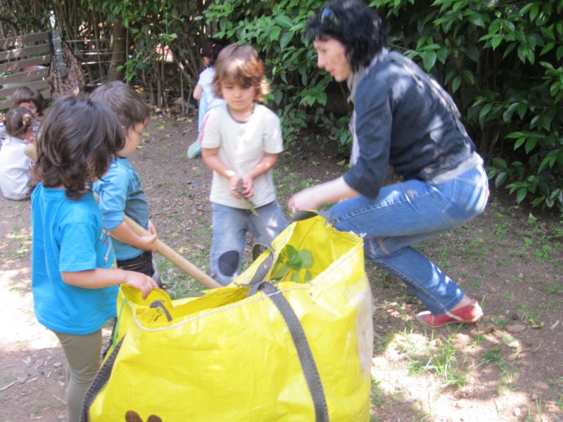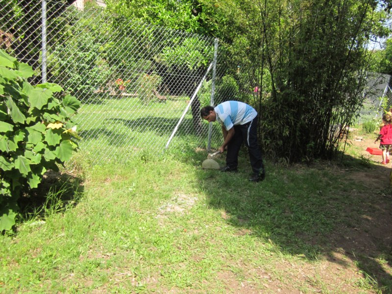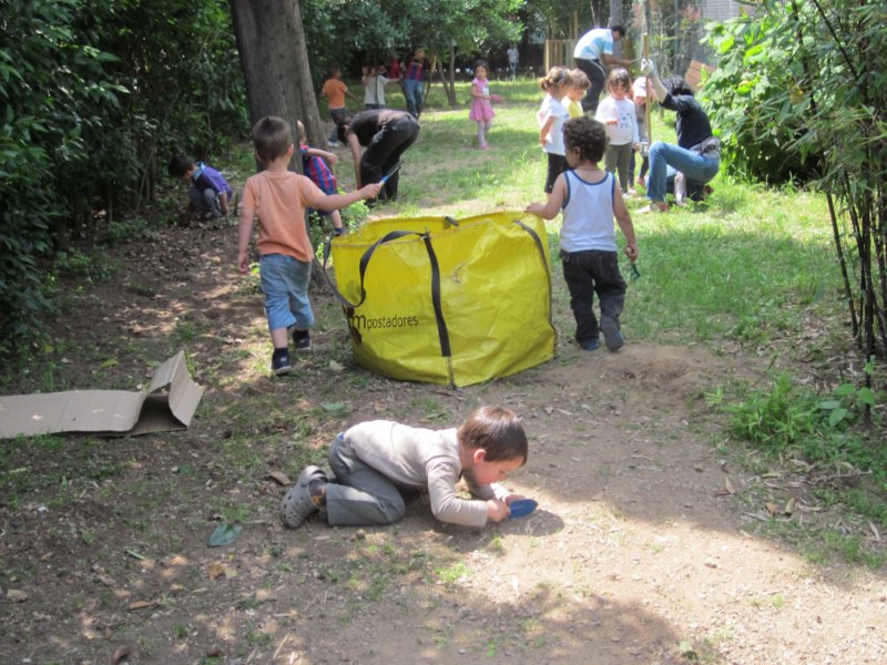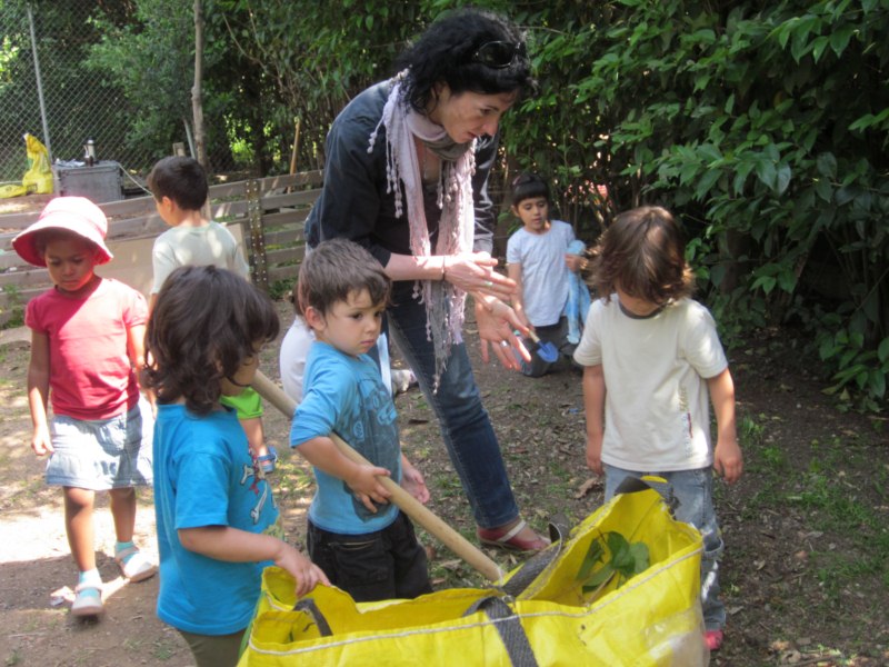 Una altra feina que s’està duent a terme aquestes setmanes és la preparació del jardinet i de l’hort. La veritat és que les famílies porten molts dies traient males herbes, pedres, preparant l’hort i el compostador.