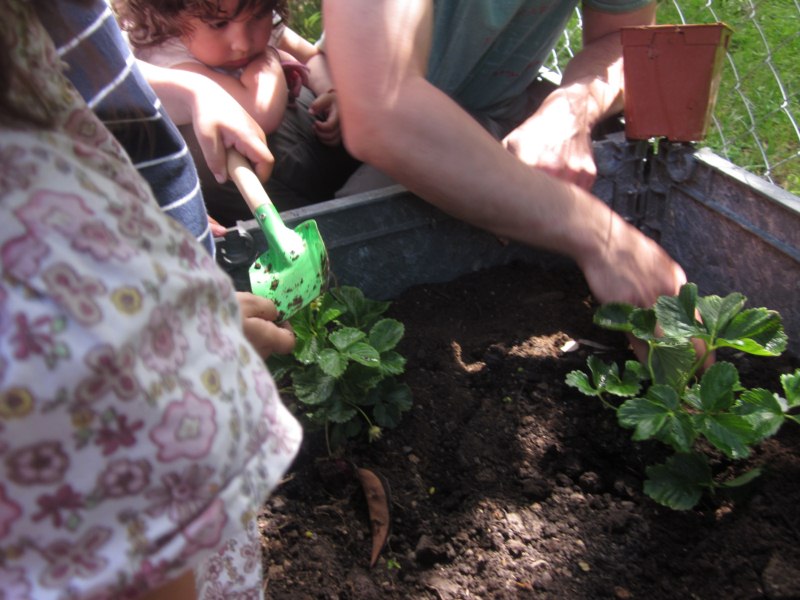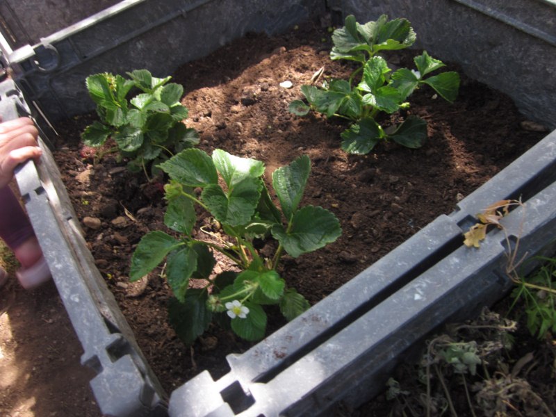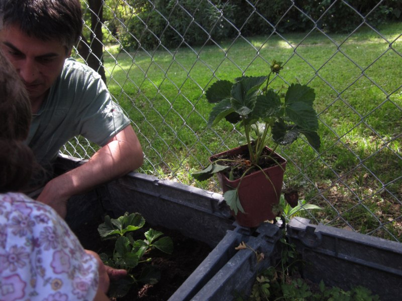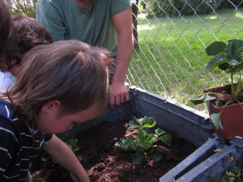 Després d’haver posat en marxa el compostador també s’ha engegat l’hort. Aquest divendres vam plantar maduixeres i enciams amb l’ajuda del Marc i la Sílvia. Vam continuar fent el compostatge i vam descobrir que ja hi havia els primers bitxets…