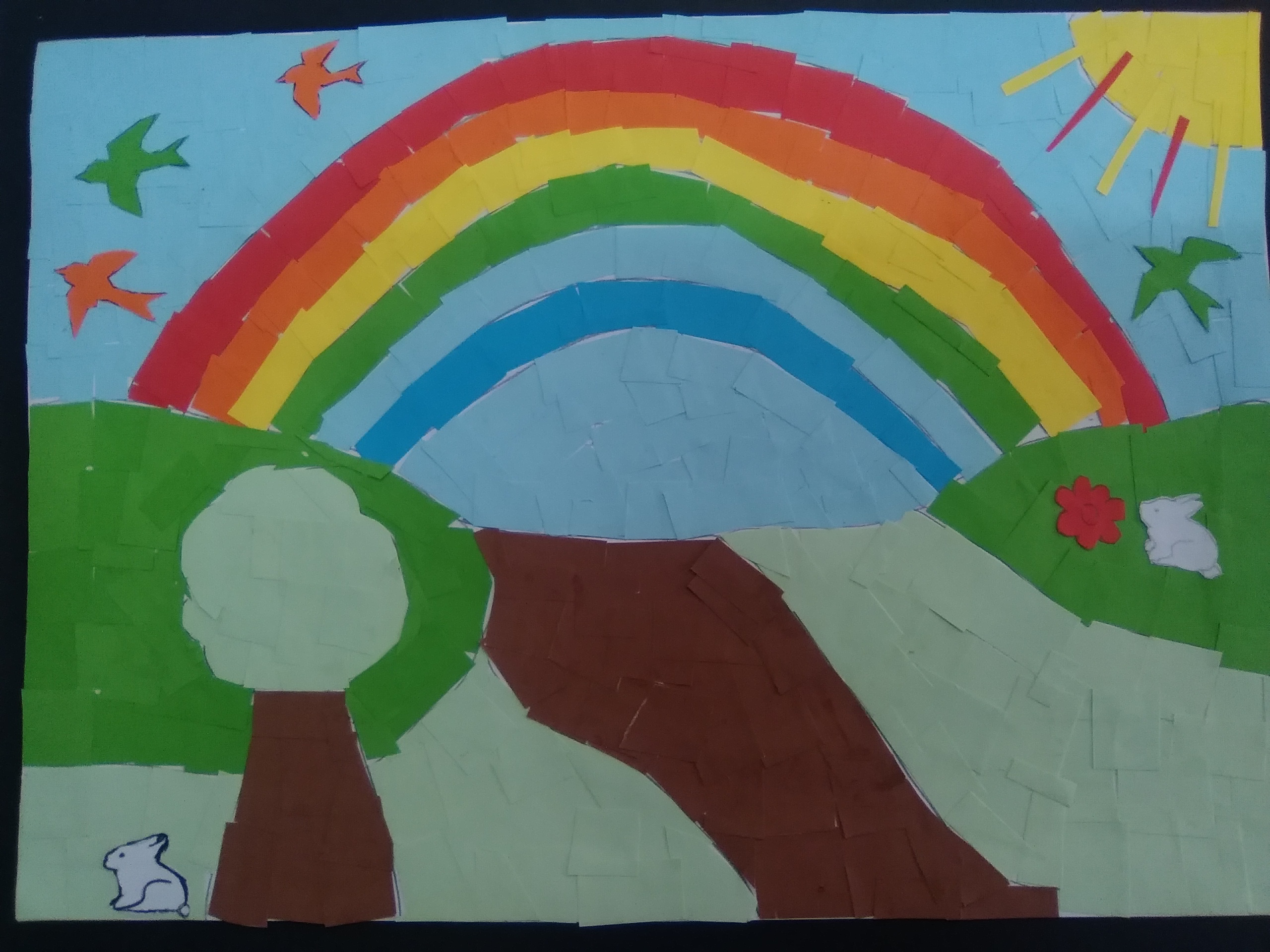 Finally, we put yellow paper for the sun .