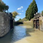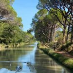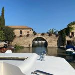 Compres diverses al supermercat Le Casino del mateix poble per l’avituallament dels dies de vaixell. Trasllat a Homps per les gestions del vaixell. L’empresa escollida és Le Boat. Amb el preu que hem pagat podem fer un check-in a les 11 del matí. Puntualment hi som, fem els tràmits però l’explicació de com funciona el vaixell, d’una hora de durada, no ens la fan fins a les 12:40. Retard inexplicable. A les 13:40 ja tenim el vaixell i sense moure’ns del port de sortida, dinem i .. a navegar direcció Argeliers. Aturada a Argens-Minervois per veure el poble, sopar i dormir. En aquest poble hi ha un bon restaurant a peu de canal molt recomanable La Guinguette ( amb reserva obligatòria). També hi ha una Epicerie, petit supermercat, amb pa i croissants (es poden encarregar per l’endemà).