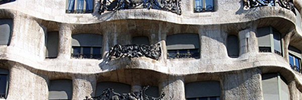 Dibuixeu un rectangle del mateix format que la fotografia de la Pedrera que acabeu d’importar, és a dir, 600 píxels d’amplada per 200 d’alçada. Superposeu-lo damunt la fotografia.