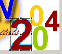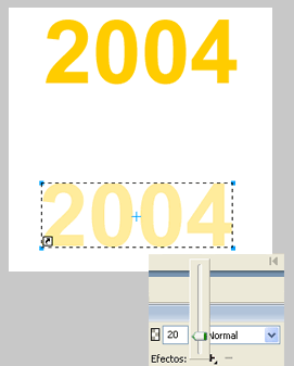 Tot seguit, escriviu el text 2004 amb la font Arial 100, negreta i color #99CC00. A continuació i amb el text seleccionat, convertiu aquest text a traçat. Per a realitzar aquesta operació recordeu que cal obrir el menú Texto i aplicar Texto | Convertir en trazados.