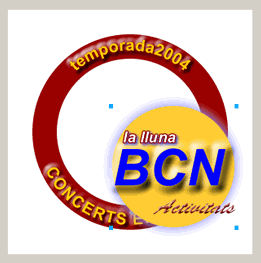 Per acabar l’exercici importeu la imatge de la segona pràctica que havíeu desat amb el nom lluna2.png i centreu-la dins de la corona circular. Per realitzar aquesta operació solament heu de repetir alguns dels passos que ja heu practicat en exercicis anteriors. Primer feu Archivo | Importar per importar l’arxiu lluna21.gif i després el reposicioneu aproximadament al centre.