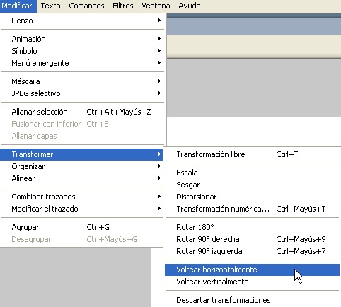 Per poder unir un text al traçat de l’arc inferior i que aquest es llegeixi correctament en vertical, cal preveure una transformació prèvia. Per fer aquesta operació, seleccioneu l’arc i apliqueu Modificar | Transformar | Voltear horizontalmente.