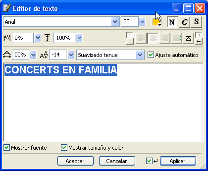 Fixeu-vos que si teniu el text seleccionat amb aquesta operació podeu canviar per una banda, l’Escala horizontal, que heu de passar a 150%, i, per l’altra, el Reespaciado, que heu de passar a 25.