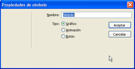 Comenceu obrint un arxiu nou de 300×300 píxels i fons blanc. A continuació obriu Editar | Insertar | Nuevo símbolo i a Propiedades de símbolo trieu-hi el tipus Gráfico.