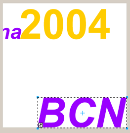 Realitzada aquesta primera part de l’exercici, seleccioneu amb el Puntero el text Barcelona i el rectangle que li fa de fons. Copieu-los i enganxeu-los a l’esquerra de manera que la forma aparent de la figura sigui simètrica. Observeu que després de realitzar aquesta operació també cal canviar el color del text copiat.