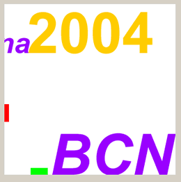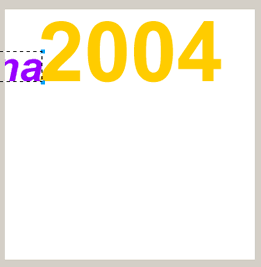 A partir d’aquí escriviu el text 2004 amb la font Arial, 50, color #9900FF. Una vegada l’hagueu col·locat adequadament, el modifiqueu i l’encaixeu amb l’opció d’espaiat de paràgrafs.