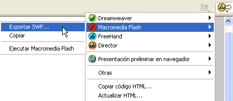Mitjançant la icona d’Exportación rápida que trobareu al marge superior dret del document, també és possible exportar les vostres animacions a altres formats, entre els quals cal destacar el SWF (ShockWaveFlash).