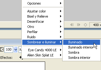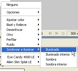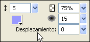 Tot seguit aneu a Efectos | Sombrear e iluminar | Iluminado i afegiu aquest efecte amb els següents paràmetres: opacitat 75%, suavitzat 15, desplaçament 0, desplaçament d’halo 5 i color #9999FF.