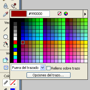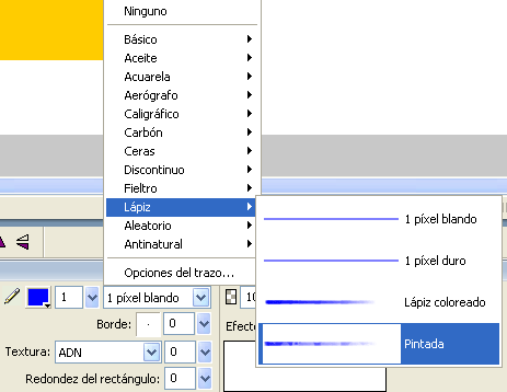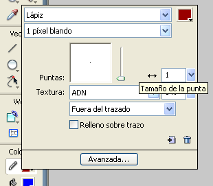 Fixeu-vos que per tal d’ajustar el traç i controlar l’amplada del filet cal obrir el menú desplegable de les Opciones del trazo. En aquest cas cal optar per una amplada de filet igual a 1 píxel.
