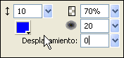 Indiqueu-hi els següents valors: color #0000FF, opacitat 70%, suavitzat 20, desplaçament 0 i desplaçament d’halo 10.