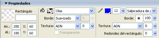 Per controlar les mides i posició d’aquest rectangle de color #9900FF, podeu utilitzar l’Inspector de propiedades, tal com mostra la figura.