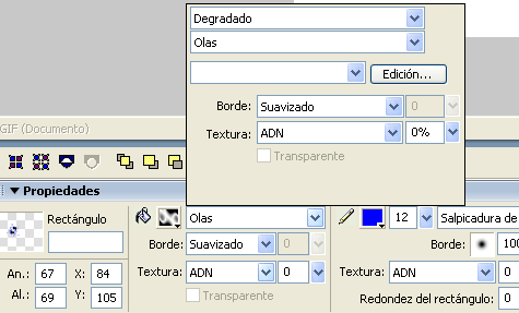 Fixeu-vos que amb les opcions de Relleno i Trazo podeu controlar la forma i representar-la de maneres diverses, ja sigui amb colors plans o bé amb efectes de degradat. Fixeu-vos que podeu canviar, amb els botons de selecció, els colors de degradat. També podeu canviar els colors i d’altres parámetres si premeu el botó Edición.
