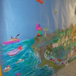el mural amb un aire modernista, suggerint als alumnes que dibuixessin la ciutat de la costa amb edificis i cases amb elements arquitectònics típics d’aquest estil.